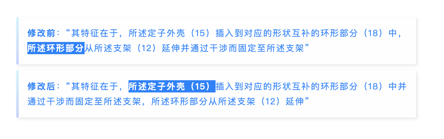 我們能夠看到,專利權(quán)人的改動(dòng)是將通過干涉而固定至所述支架的主體由“環(huán)形部分”修改為了“定子外殼”。對(duì)此,權(quán)利人一方辯稱,修改前的權(quán)利要求1中存在筆誤,主張根據(jù)美國(guó)和歐洲同族專利文件修改明顯錯(cuò)誤,并主張這是從權(quán)利要求書上下文和說明書直接得到的唯一的技術(shù)方案,沒有超出原權(quán)利要求書和說明書的記載。
