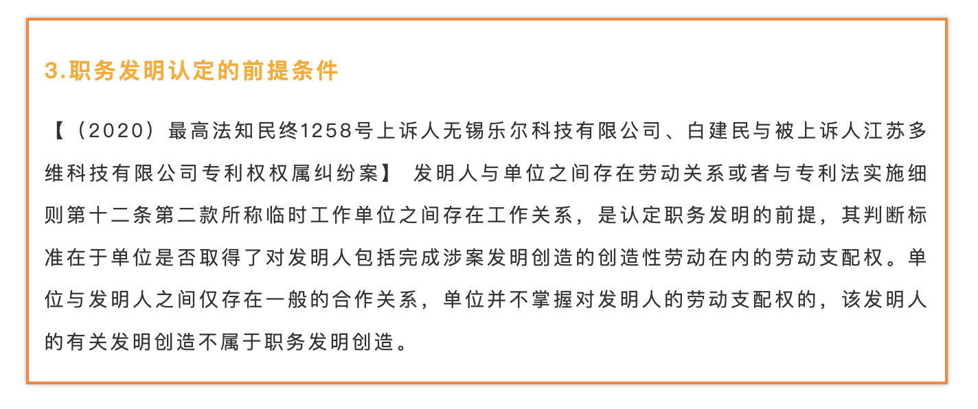 三聚陽光及旗下易聚律所代理的【(2020)最高法知民終1258號上訴人無錫樂爾科技有限公司、白建民與被上訴人江蘇多維科技有限公司專利權(quán)權(quán)屬糾紛案】所涉及的職務(wù)發(fā)明創(chuàng)造的認定條件極具典型性而得以入選。