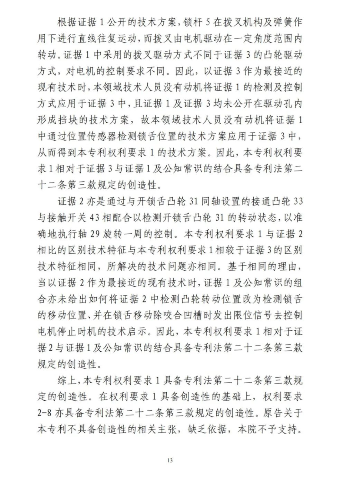 近日,北京知識產(chǎn)權(quán)法院發(fā)布了《專利確權(quán)授權(quán)審判案析2014-2024》,從其十年間審結(jié)的逾一萬件專利確權(quán)授權(quán)案件中,精選了58件具有指導(dǎo)意義的案例,并提煉出20條案析規(guī)則,為業(yè)界提供明確的司法指引。三聚陽光代理的“一種鎖”發(fā)明專利確權(quán)案因其典型性入選,為專利創(chuàng)造性的判斷提供了有力示范。