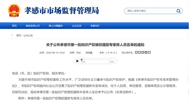 このたび、湖北省孝感市市場監(jiān)督管理局は、初の知的財産権保護(hù)支援専門家データベースのメンバーリストを正式に発表しました。三聚陽光からは、張建綱総裁、高東輝副総裁、朱正強(qiáng)副総裁、羅嘯コンサルティング事業(yè)部長、向長松研究コンサルティング部マネージャー、解立艷氏、龐世崇氏の7名が見事選出されました。この栄譽(yù)は、三聚陽光が知的財産権保護(hù)支援分野で卓越した実力を持つことを示すと同時に、同社が知的財産サービス分野で広く認(rèn)められていることを証明しています。