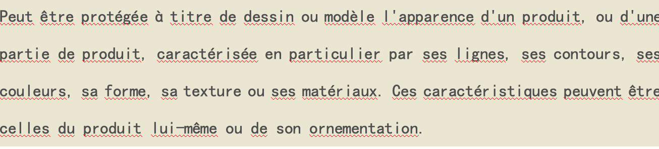 法國(guó)的外觀設(shè)計(jì),保護(hù)工業(yè)和手工產(chǎn)品的線條、輪廓、顏色、形狀、紋理、材料或其結(jié)合而成的富有美感并適于工業(yè)應(yīng)用的新設(shè)計(jì)或新造型。但是存在下列情況的,不予注冊(cè):