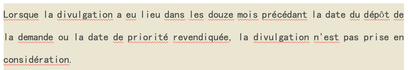 法國(guó)《知識(shí)產(chǎn)權(quán)法典》第L511-6條中有關(guān)于寬限期的法律規(guī)定,當(dāng)申請(qǐng)人或其繼承人在提交外觀設(shè)計(jì)的注冊(cè)申請(qǐng)或優(yōu)先權(quán)日之前的12個(gè)月內(nèi)公開(kāi)相關(guān)外觀設(shè)計(jì)的,不喪失新穎性。
