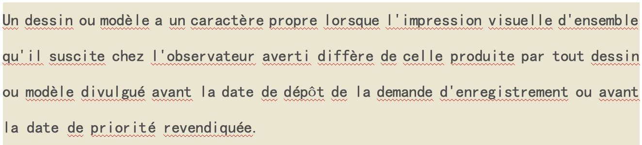 法國(guó)《知識(shí)產(chǎn)權(quán)法典》第L511-2條規(guī)定,只有新穎且獨(dú)特的外觀設(shè)計(jì)才能受到保護(hù)。