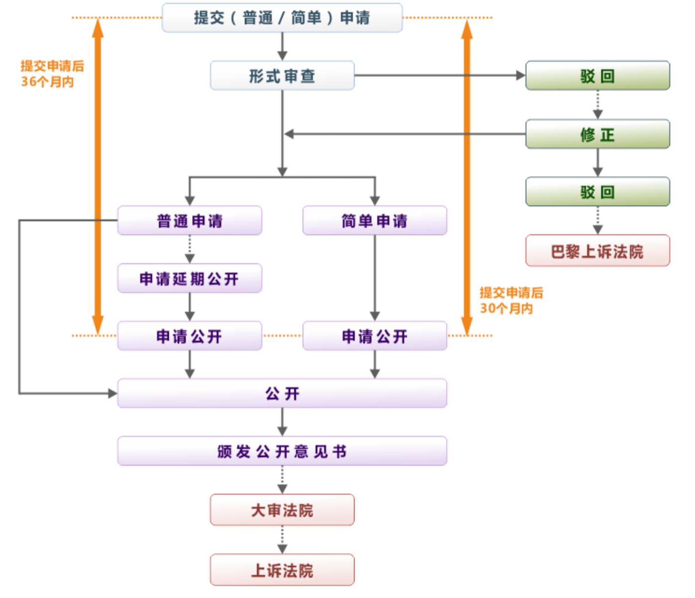法國(guó)外觀設(shè)計(jì)申請(qǐng)分為普通申請(qǐng)和簡(jiǎn)單申請(qǐng)兩種形式。INPI的審查結(jié)束后,針對(duì)不同的申請(qǐng)形式,公開(kāi)的時(shí)間也不同。