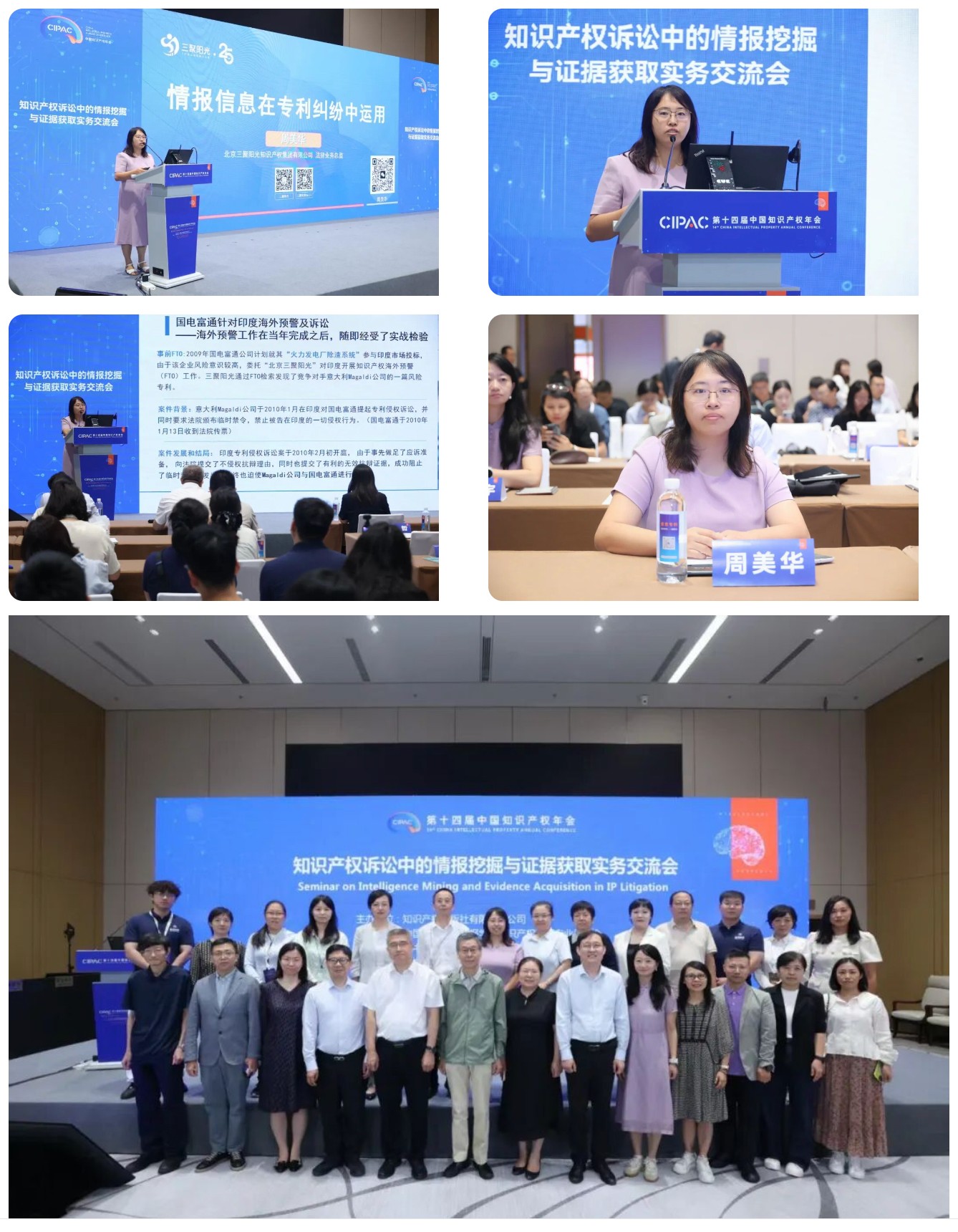 交流會上,三聚陽光知識產(chǎn)權(quán)集團法律業(yè)務(wù)總監(jiān)周美華律師以《情報信息在專利糾紛中運用》為題作精彩分享,聚焦專利訴訟中的取證策略制定,深入探討情報分析在知識產(chǎn)權(quán)維權(quán)實踐中的關(guān)鍵價值。