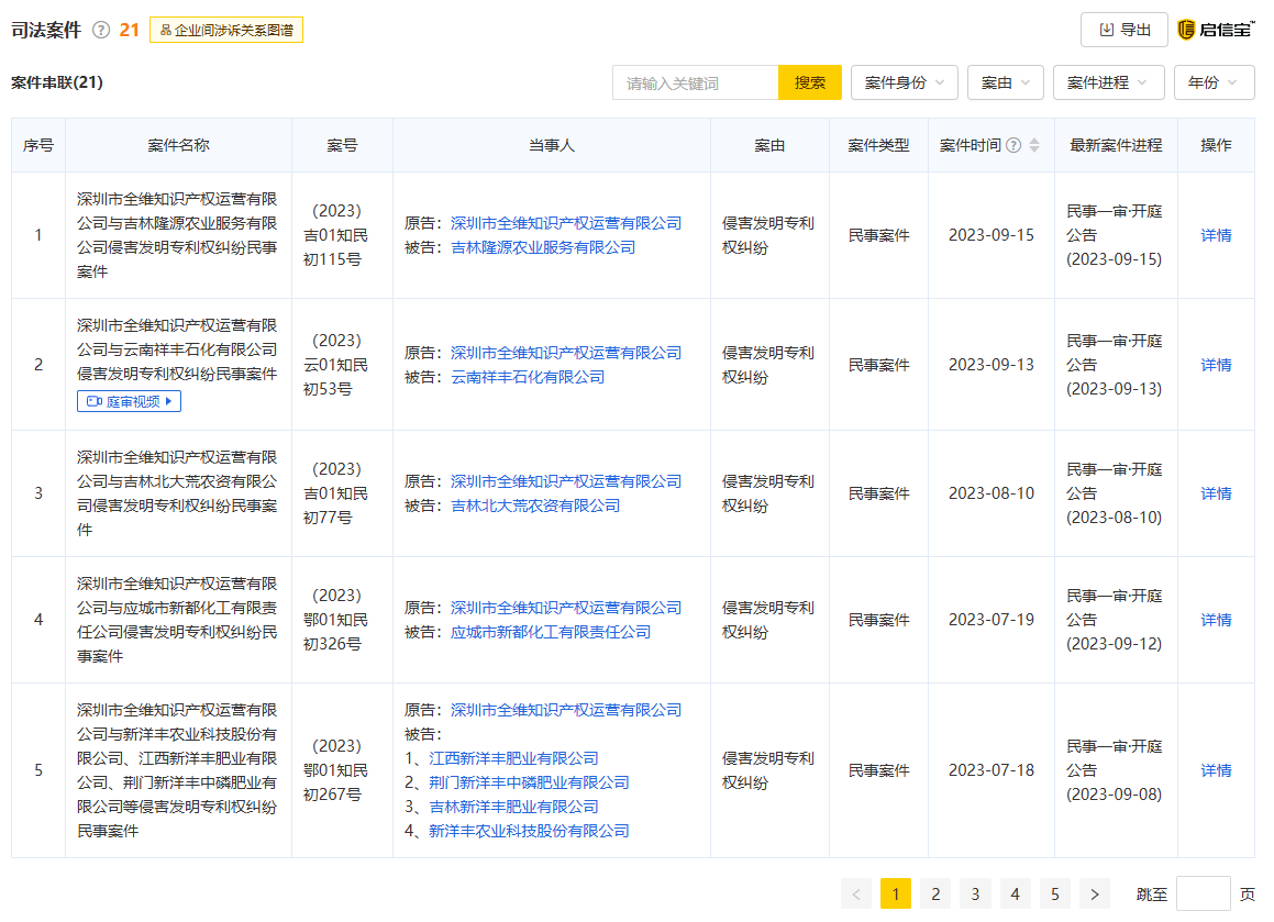 隨后,全維公司以此為“武器”,自2020年起,針對廣東、湖北、四川、福建、山東等地的二十余家復合肥生產(chǎn)企業(yè)發(fā)起了密集的專利侵權(quán)訴訟,索賠金額從100萬元到1000萬元不等,甚至要求企業(yè)拆除生產(chǎn)設(shè)備。