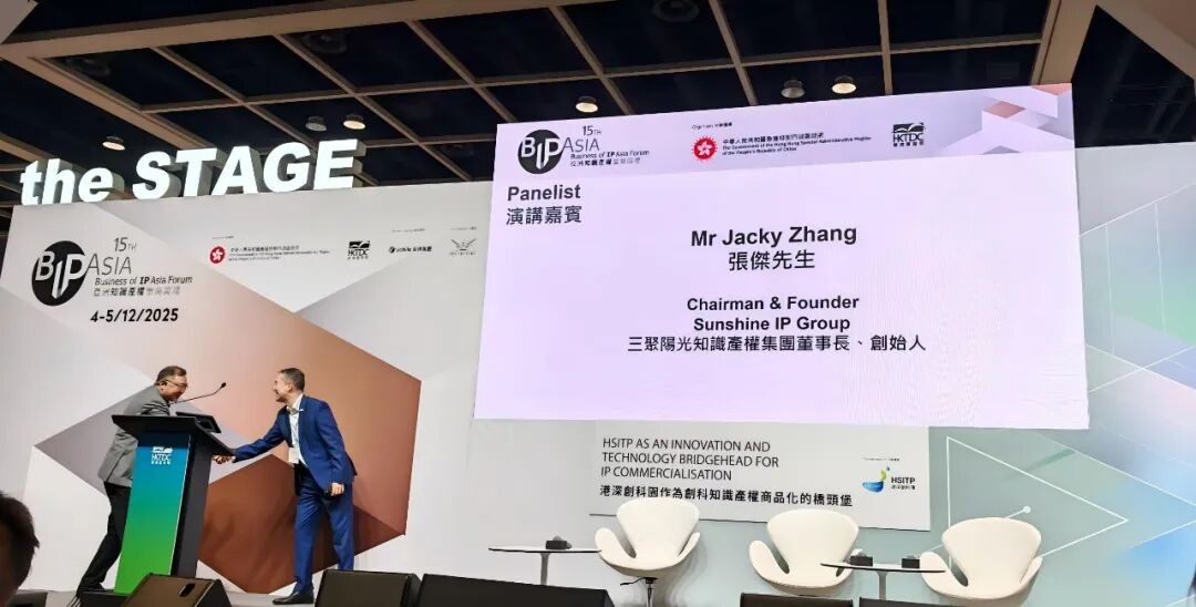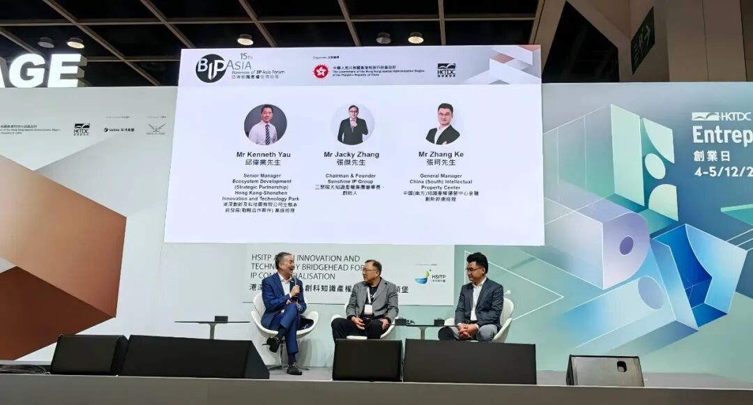 12月4日至5日,第十五屆亞洲知識產(chǎn)權(quán)營商論壇(BIP Asia)在香港會議展覽中心舉行。本屆論壇由香港特別行政區(qū)政府與香港貿(mào)易發(fā)展局主辦,聚焦“推動引資 賦能增長”,圍繞知識產(chǎn)權(quán)如何支撐企業(yè)融資、估值與可持續(xù)增長展開交流,并繼續(xù)設(shè)置面向產(chǎn)業(yè)對接與展示的相關(guān)板塊。三聚陽光知識產(chǎn)權(quán)集團(tuán)受邀參會并設(shè)展,積極與政府機(jī)構(gòu)、產(chǎn)業(yè)組織及國際同業(yè)開展對話與合作。集團(tuán)董事長、香港公司董事張杰,香港公司總經(jīng)理張治華,集團(tuán)涉外部經(jīng)理程鋼,涉外市場部副經(jīng)理羅丹稱等參會。
